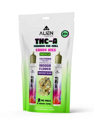 If you’re on the lookout for a unique cannabis experience, look no further than the Candy Kiss Alien Exotics Premium THC-A Knockout Blend Pre-Roll 2ct. This product stands out in the growing world of cannabis for several reasons, blending quality, convenience, and a flavor profile that promises to usher you into a realm of relaxation and enjoyment.