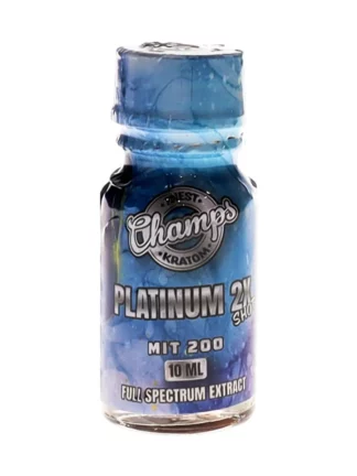 The Platinum 2x Champs Kratom Shot MIT 100 10ml stands out primarily due to its high concentration of kratom extracts, tailored for both newcomers and seasoned enthusiasts. This compact 10ml shot delivers an impressive potency, thanks to its carefully selected ingredients designed for maximum effectiveness. The “2x Champs” label signifies that this product is twice as strong as standard kratom shots, appealing to those who seek amplified effects.
