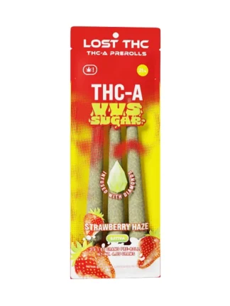 The Strawberry Haze Lost THC THC-A VVS Sugar Diamond Infused Pre-Roll 3ct delivers a premium smoking experience crafted for flavor seekers and potency enthusiasts alike. Each pre-roll is infused with high-quality THC-A and VVS sugar diamonds, ensuring a smooth, powerful, and flavorful session from the very first puff. With three expertly rolled joints per pack, you get convenience, consistency, and unmatched quality in one sleek package.